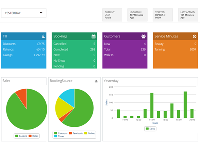 An easy to read, real-time user interface, showing a graphical presentation of your salon’s Key Performance Indicators (KPIs).